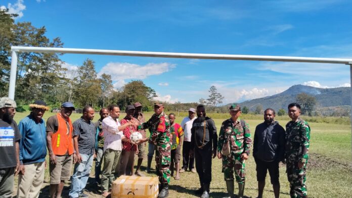 Wujud Kepedulian TNI, Satgas TMMD Serahkan Bola dan Gawang untuk Pemuda Kampung Algonik