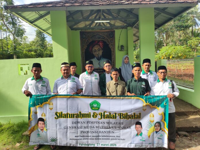PANDEGLANG,BRS — Dewan Pimpinan Wilayah (DPW) Generasi Muda Mathla’ul Anwar (GEMA MA) Provinsi Banten menggelar agenda halal bihalal dan ziarah ke makam pendiri Mathla’ul Anwar, KH. Mas Abdurahman, di Komplek Perguruan Cikaliung, Saketi, Pandeglang, Jumat (27/3/2026). Kegiatan ini dirangkaikan dengan ramah tamah di Cafe Saung Kita, Pandeglang, sebagai bagian dari silaturahmi pasca Ramadhan dan Idul Fitri 1447 H.